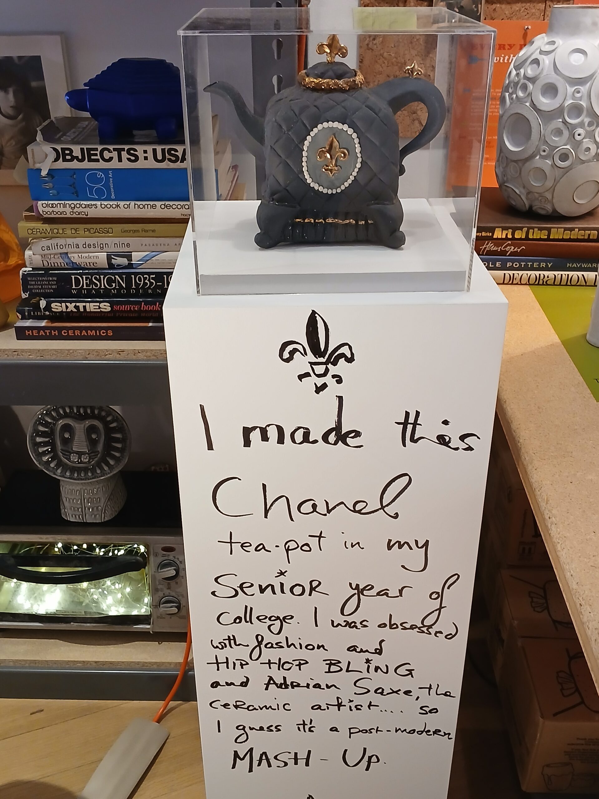 A Chanel tea kettle he made in college, at the Jonathan Adler exhibit at MOAD. Copyright Deborah Abrams Kaplan
