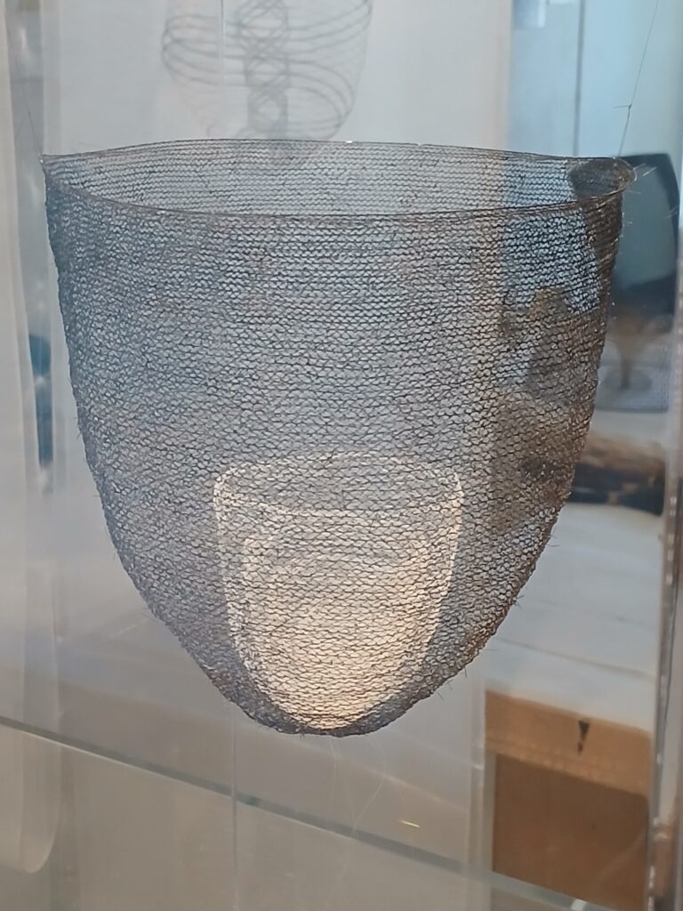Go to the studio floor, and check out the artist studios. There may be an artist working who you can talk to, or you an look through the window at their work. I was fascinated by Jayoung Yoon‘s work, which is weaving things out of hair. The basket below is her own hair ,and her mother’s. It sounds creepy but it was just lovely.