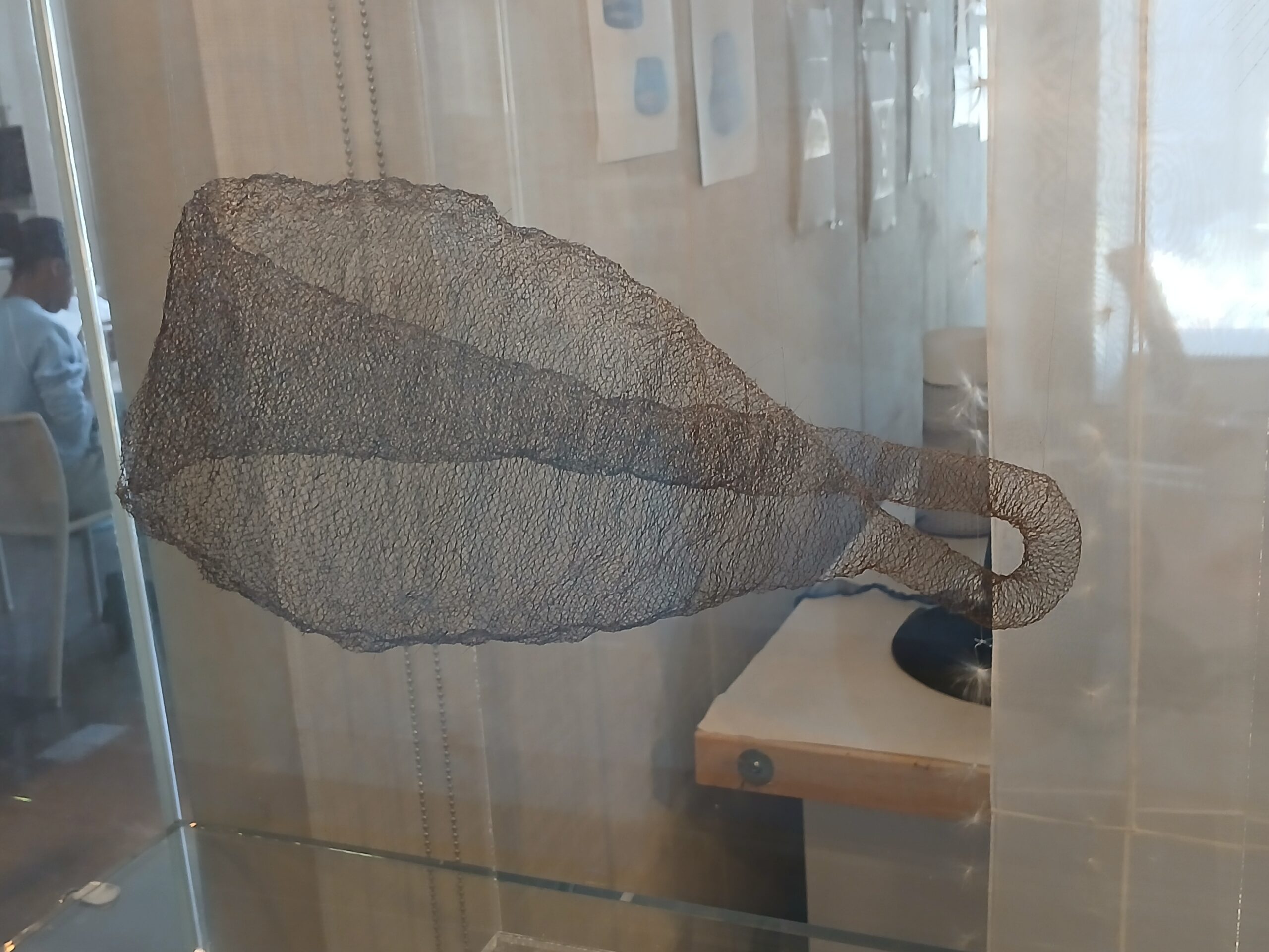 The piece below is made of her hair and it looked like an Escher piece. The left side is open, and that tube goes through the middle and comes back out. Interesting to look at from all angles.
